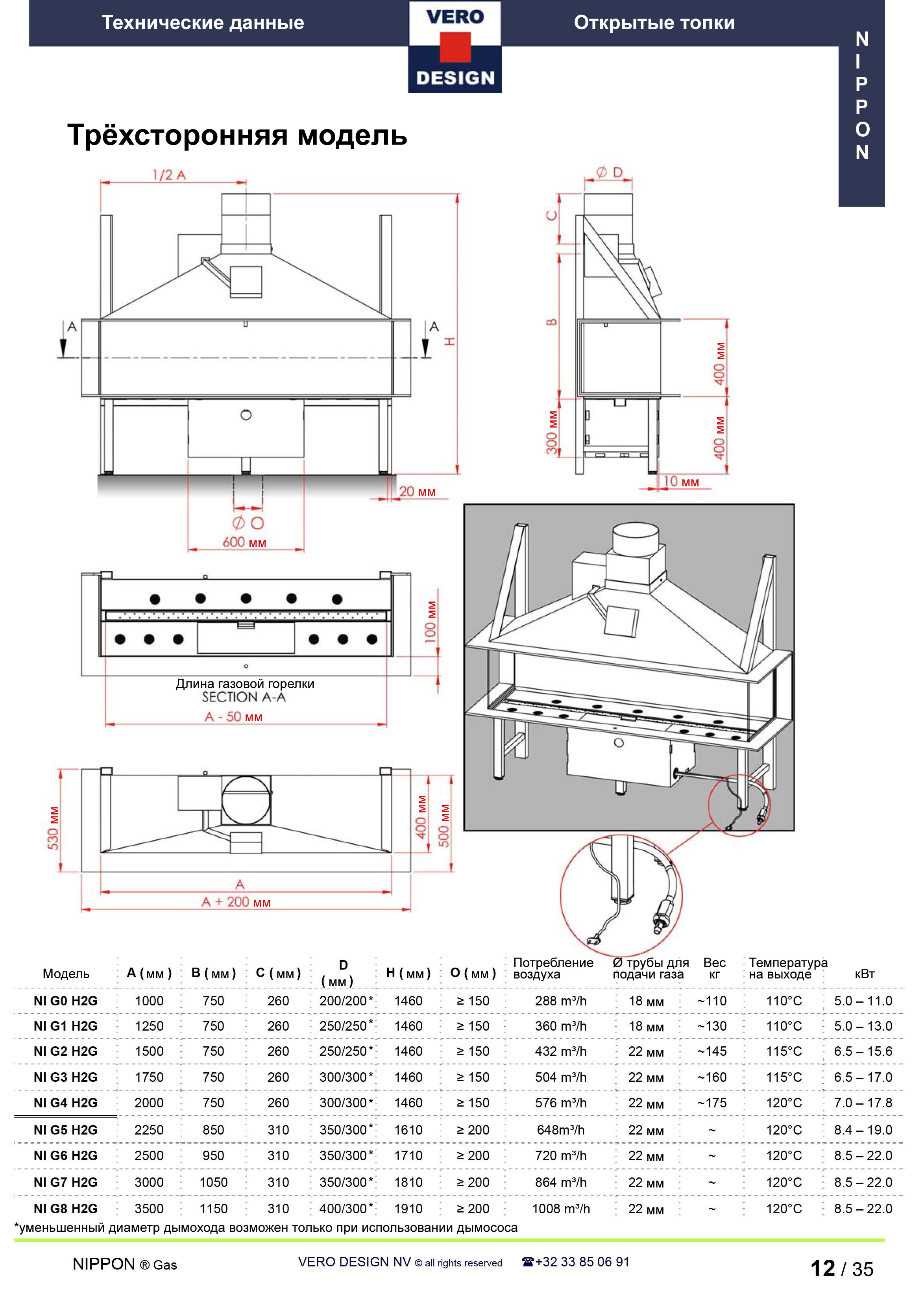 Газовый камин Vero Design Nippon NI G7 H2