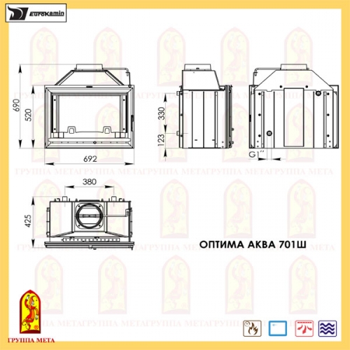 Каминная топка Мета Eurokamin Оптима Аква 701Ш