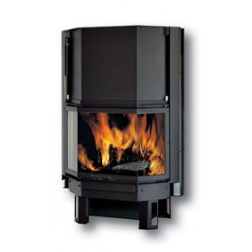 Закрытая топка со стальным корпусом и большим обзором огня. Эркерное составное огнеупорное стекло. Очаг с чугунной футировкой. Плавный подъем дверцы- гильотина. Такая топка может устанавливаться как с пристенной облицовкой, так и в угловой версии.