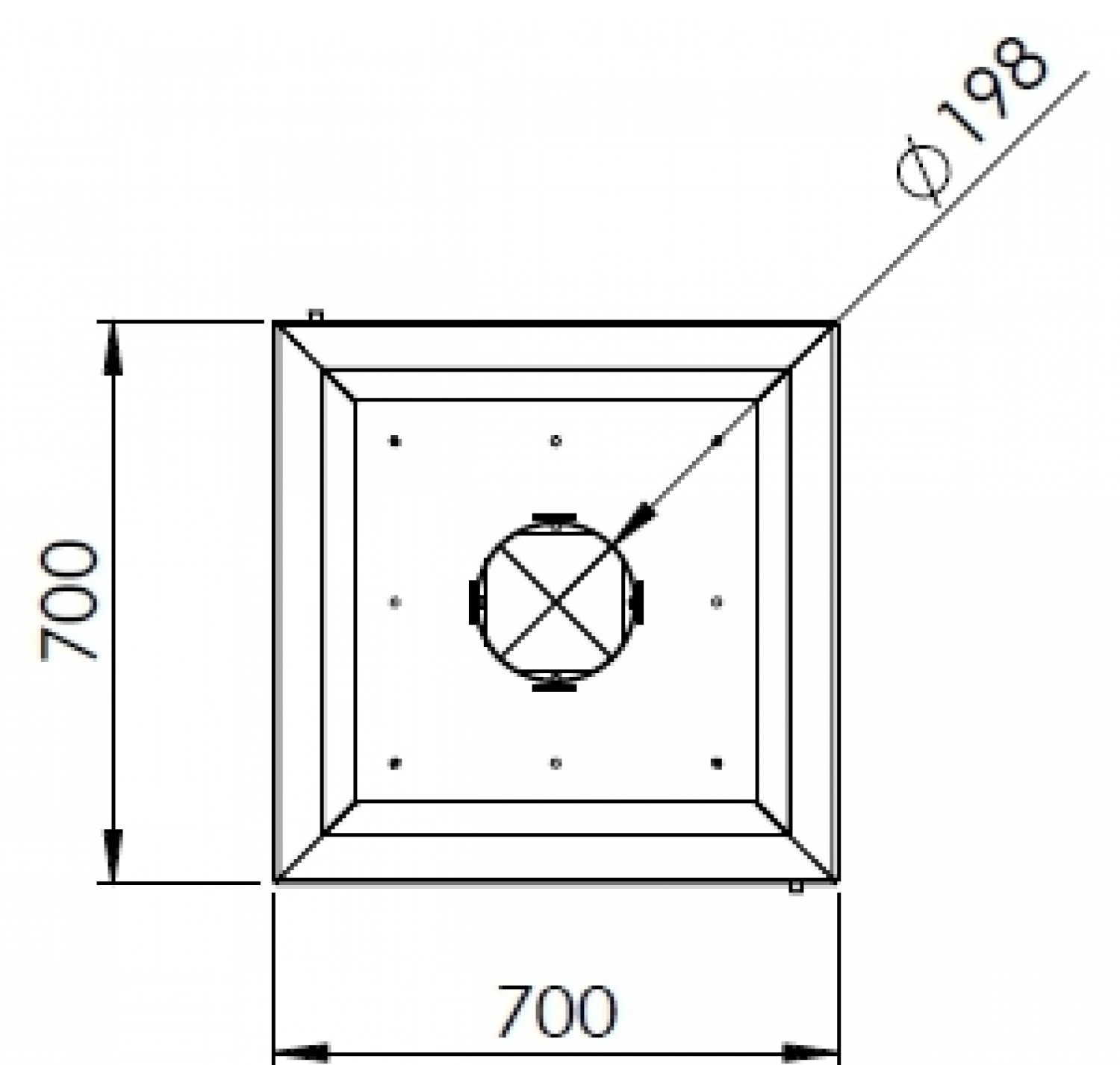 Центральный подвесной камин со стеклом и двойным верхним кожухом. Цвет - серый, кожух - RAL 5023.