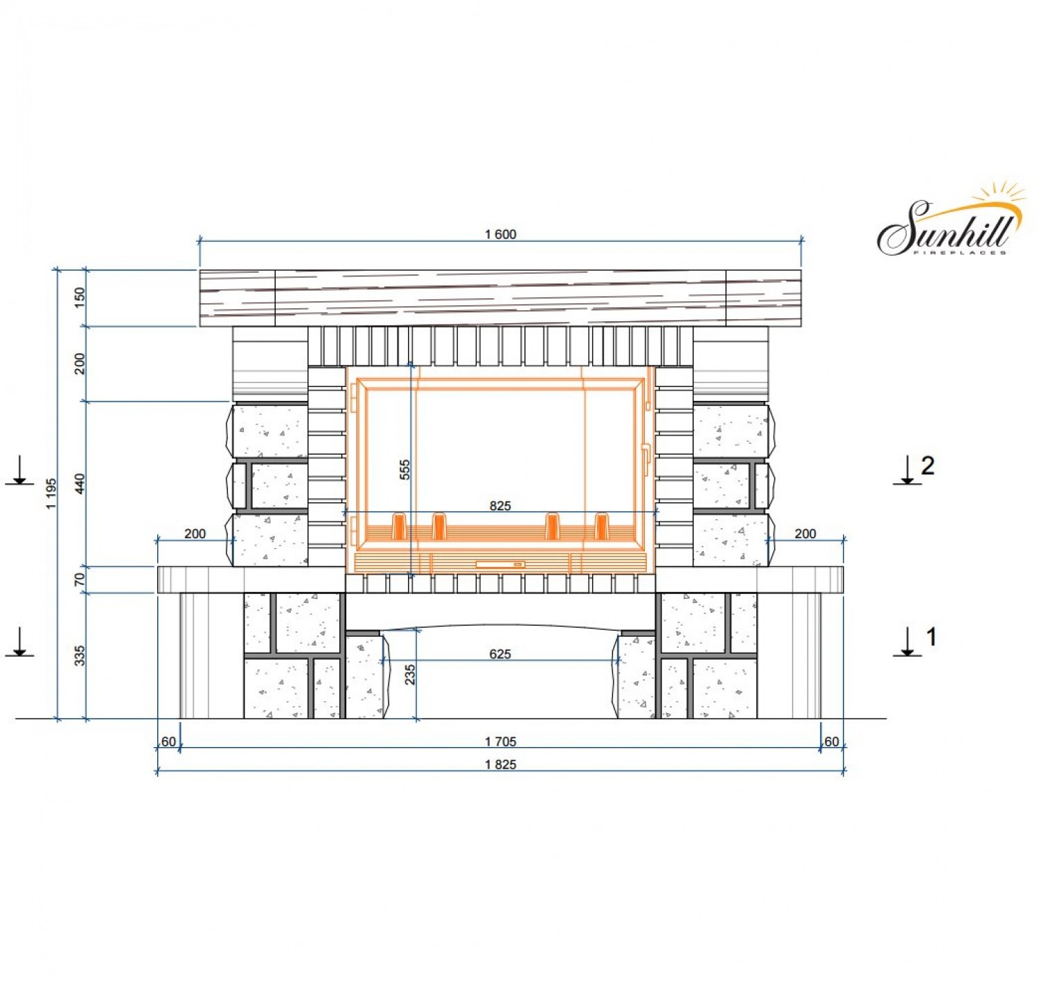 Модель камина Sunhill Vizla сделана из крупных блоков грубоколотого ракушечника Du Gard, столешница выполнена из шлифованного ракушечника Du Gard (Франция). Камин представляет собой эстетичное сооружение, максимально приближенное к природной романтике. Топочная часть выложена красным огнеупорным кирпичом. Над топкой располагается декоративная балка из массива дуба.