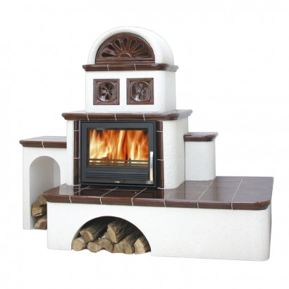 Самая большая кафельная печь в модельном ряду чешского завода «АВХ». Эта модель, безусловно, станет центральным предметом интерьера не только того помещения, где будет установлена, но, пожалуй, и всего Вашего дома. Сочетание изразцовых элементов и белой металлокерамической поверхности делает дизайн этого камина уникальным. Изготавливается в «левом» и «правом» исполнении. Камин комплектуется топкой с номинальной мощностью 10кВт. Цвет облицовки может быть коричневым или зеленым. Наличие 2-х вместительных дровников позволяет создать большой запас топлива, не занимающий дополнительного пространства в помещении.