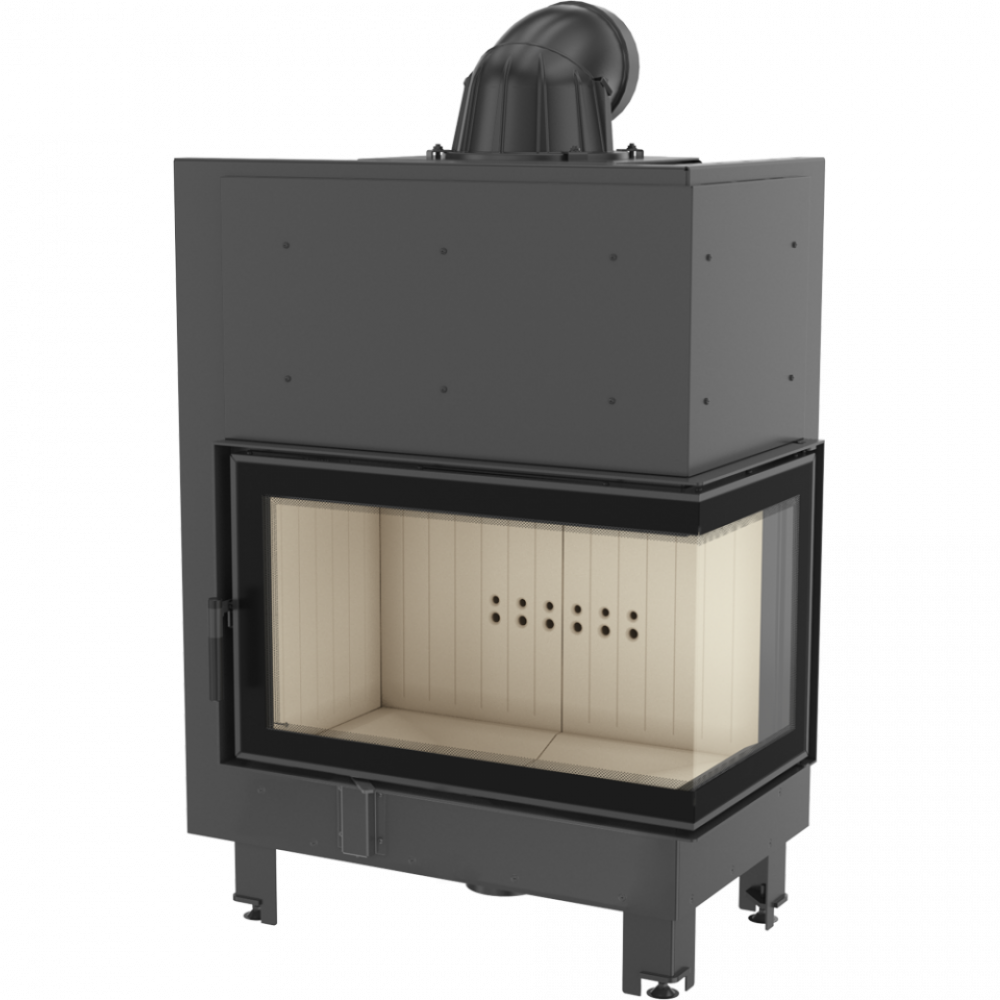 Угловая каминная топка Kratki MBO/P/BS (Г-образное стекло справа) – это популярная модель стальных очагов от польского производителя, которая обладает высокой номинальной мощностью – 15 кВт. Внутренняя камера сгорания обшита современным керамическим материалом, который положительно влияет на увеличение теплоотдачи и увеличивает коэффициент полезного действия прибора до 83 %.