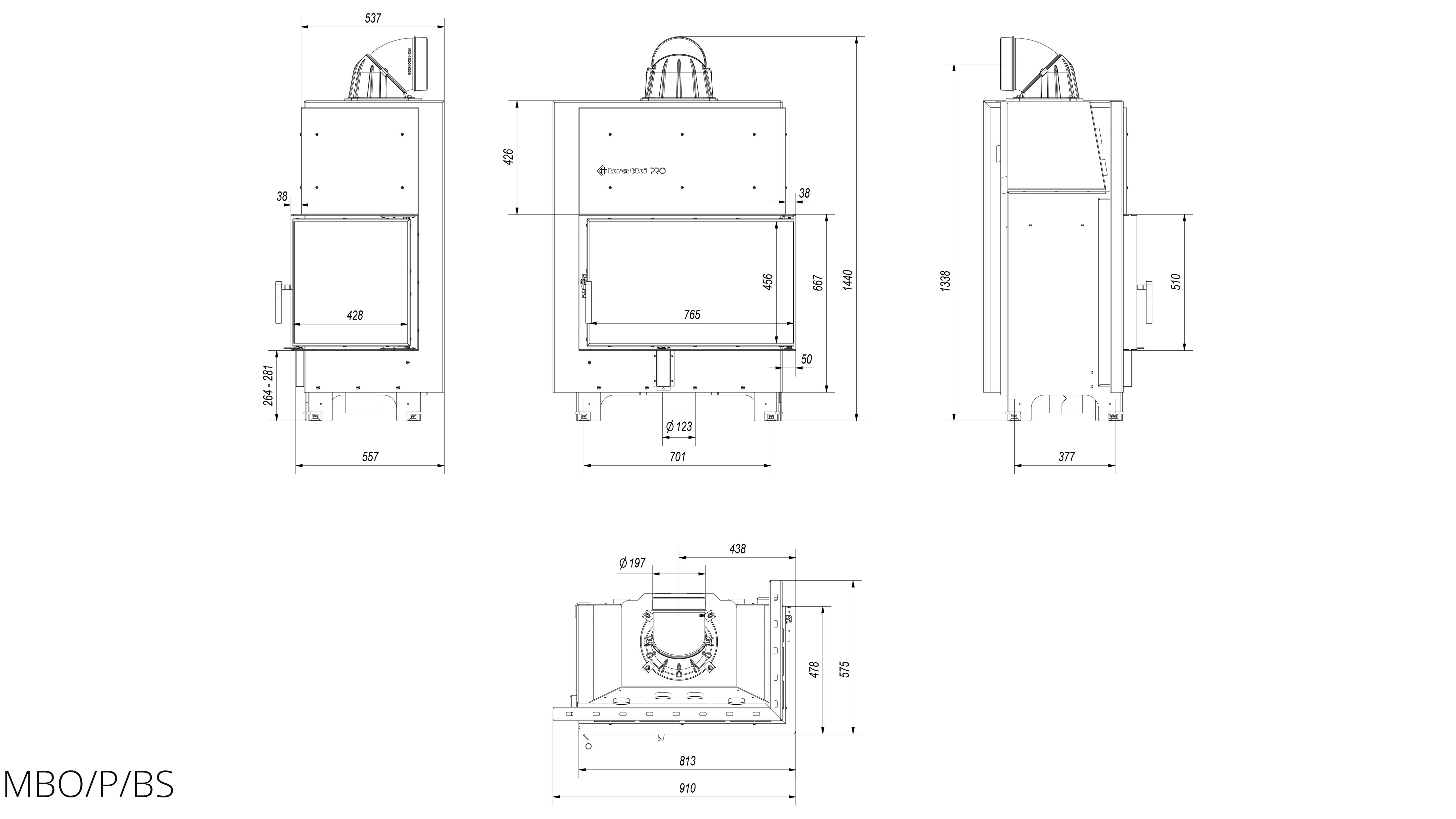 Каминная топка Kratki MBO/P/BS