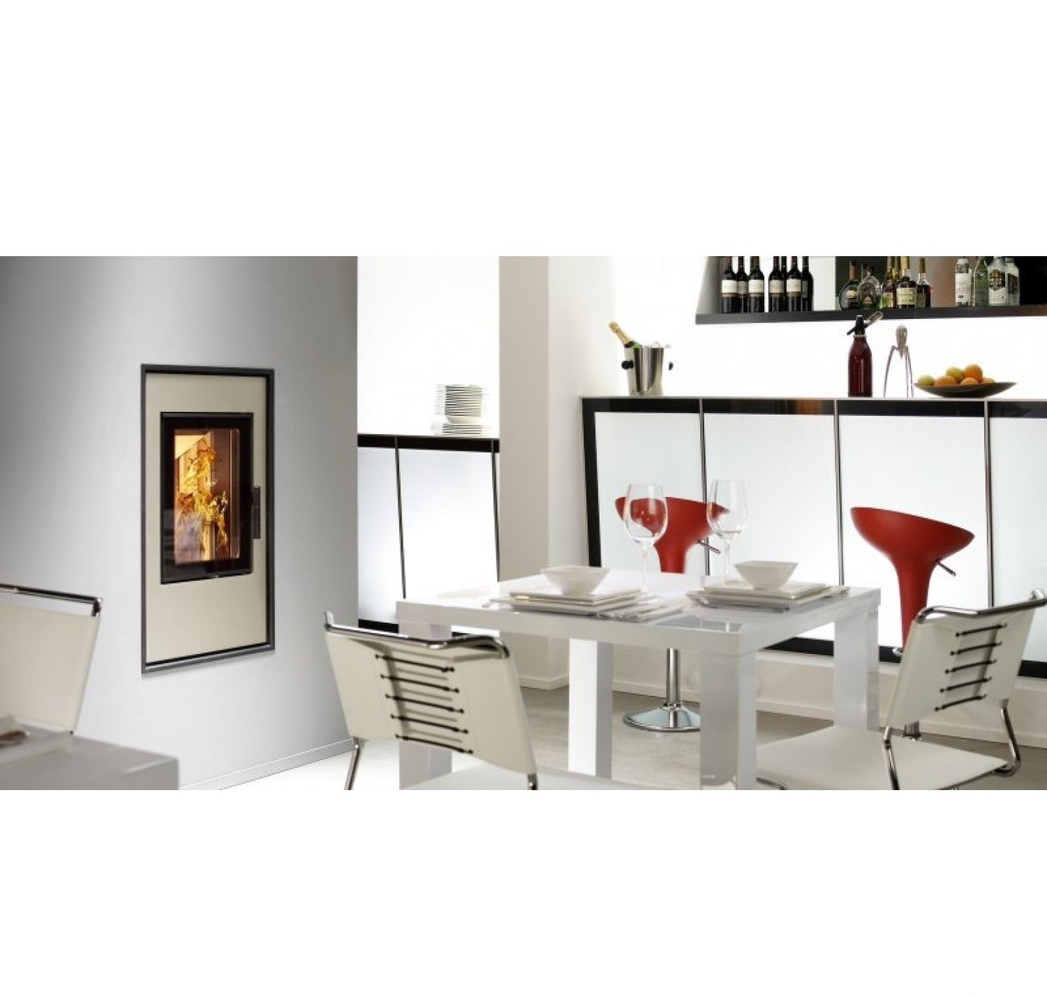 В топке имеется система длительного горения и система чистого стекла. Имеется возможность для подвода дополнительного воздуха из других помещений или улицы для процесса горения, что сводит к минимуму выжигание кислорода в помещении во время работы камина.